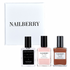 お好みのネイルベリー ポリッシュを薄く 1 回塗ります。幅広のテーパーブラシを使用して、爪の根元から先端まで完璧にコーティングします。塗布後、乾燥させます。